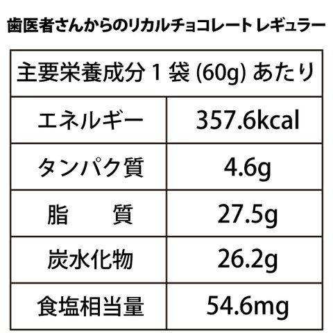【原材料名】 全粉乳、ココアバター、カカオマス、植物油脂、甘味料(キシリトール)、乳化剤(大豆由来)、香料 【関連商品】 【リカルチョコレート抹茶】 歯医者さんからのリカルチョコレート抹茶 1袋(60g) 【リカルチョコレート】 歯医者さんからのリカルチョコレート 1袋(60g) 歯医者さんからのリカルチョコレート 2袋セット 歯医者さんからのリカルチョコレート 3袋セット 歯医者さんからのリカルチョコレート 4袋セット 歯医者さんからのリカルチョコレート 5袋セット 【メール便で送料無料リカルチョコレート】 歯医者さんからのリカルチョコレート 1袋(60g) 【送料無料リカルチョコレート】 歯医者さんからのリカルチョコレート 6袋セット 歯医者さんからのリカルチョコレート 10袋セット 歯医者さんからのリカルチョコレート 12袋セット